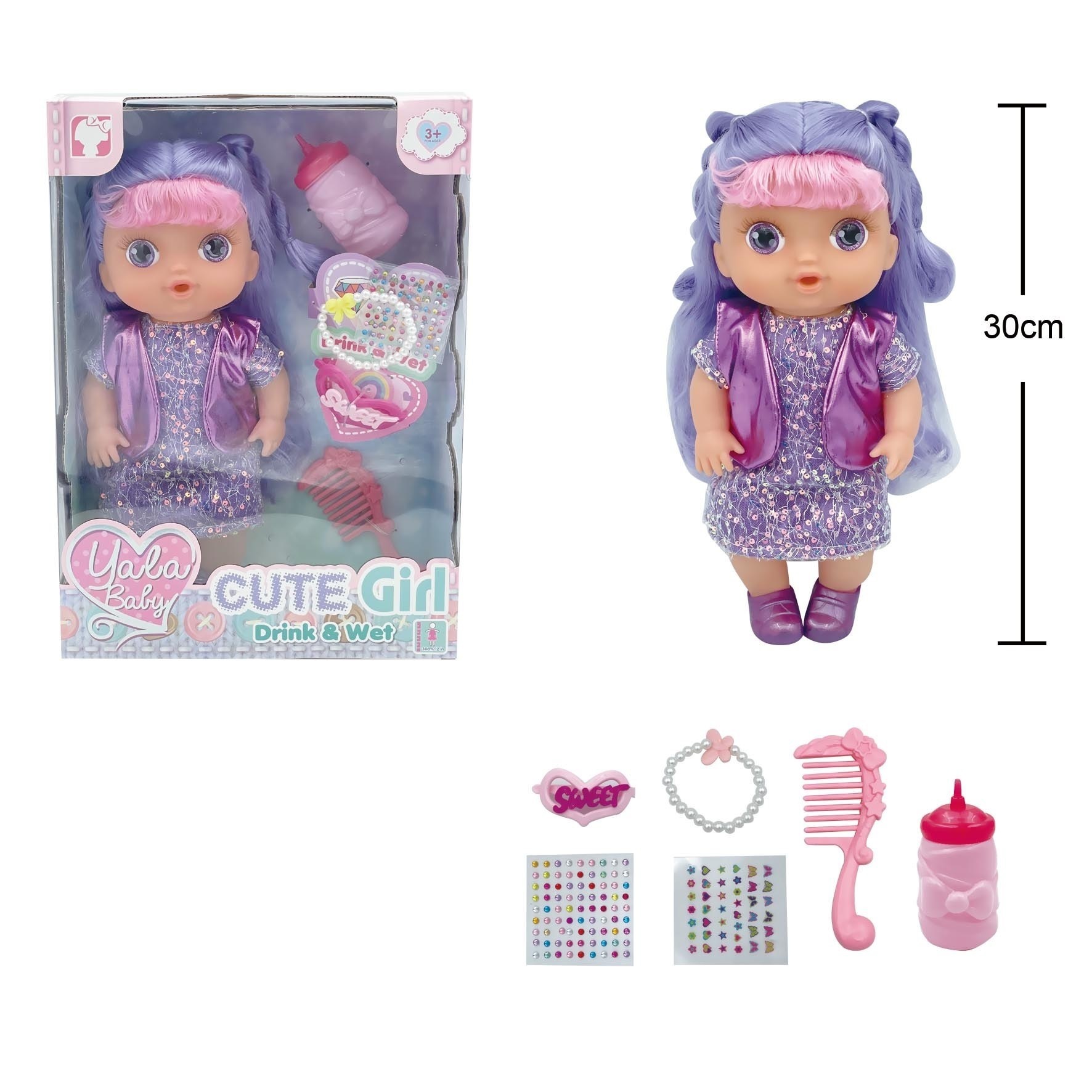 Setul include o papusa si obiecte suplimentare pentru crearea unui mediu complet de joaca, dezvoltand abilitatile sociale si fantezia micutului.