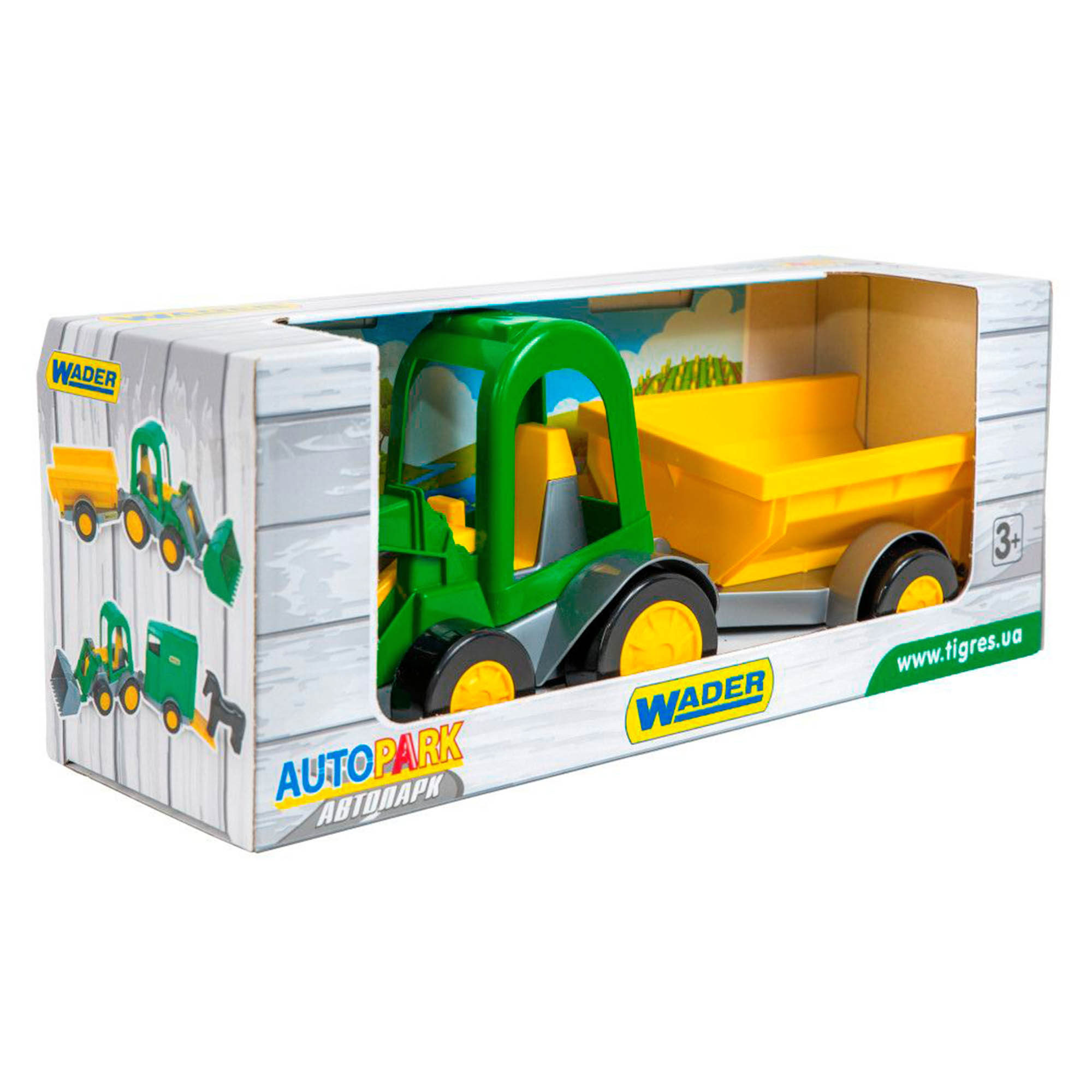 Un model de utilaj agricol la scara mare pentru jocuri ample. Cupa mobila si remorca incapatoare permit transportul pamantului sau al altor jucarii, extinzand limitele lumii de joaca.