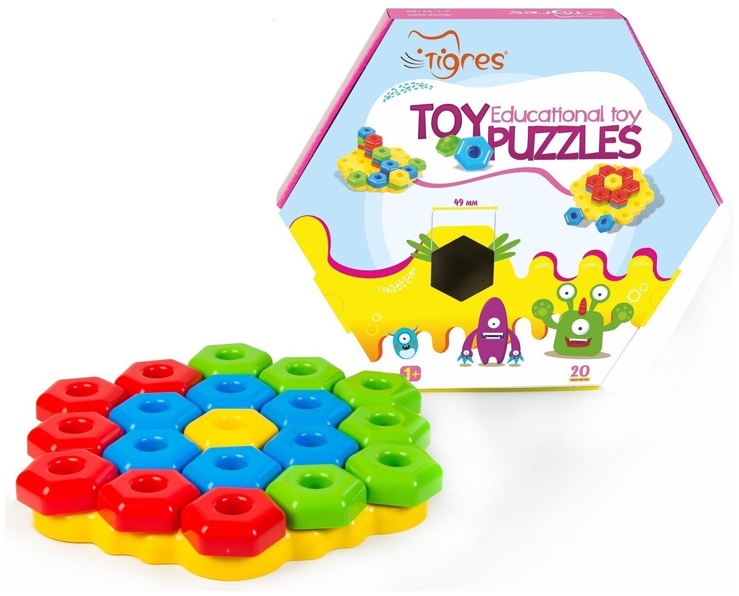 Набор из 39 крупных элементов для развития логики. Помогает ребенку учиться сопоставлять детали и узнавать новые предметы через игру.